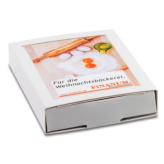 Eine kleine Karton Box mit großer Wirkung. Die individuelle Werbebotschaft befindet sich auf der Werbekarte, welche in den Deckel eingeschoben wird. Die Slide-Box beinhaltet ein Edelstahl- Backförmchen, Made in Europa.