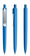 Die Ikone eines klassischen Schreibgerätes. Wertige Clip-Druckknopf-Kombinationen aus Metall machen den DS8 Metall-Clip noch vielseitiger. Ein ausgewogener Material-Mix aus Metall und Kunststoff, der Marken gekonnt in Szene setzt. Metall-Clips in verschiedenen Finishs verleihen ihm einen luxuriösen Touch. Die farblich absetzbaren Clip-Holder bieten eine Möglichkeit, neben der Primärfarbe auch die Zweitfarbe der Corporate Identity harmonisch umzusetzen. In der Ausführung mit Schaft in Soft Touch-Oberfläche (PSR) lieferbar in zehn Standardfarben, hergestellt mit einem Rezyklatanteil von 100% (Schwarz) oder 50% (alle anderen Farben), gekennzeichnet mit dem internationalen Recycling-Symbol. Sondergehäusefarben ab 5.000 Stück. Fünf Druckflächen für Werbeanbringungen stehen zur Verfügung. Die Standardausführung ist mit Silber satiniertem Clip ausgestattet. Als Option stehen Clips in galvanisiertem Schwarz oder Graphit zur Auswahl. Der Druckknopf ist aus Kunststoff. Ausgestattet mit der umweltfreundlichen auswechselbaren FLOATING BALL® lead free-Großraummine 1.0, Schreiblänge 5.000 m, Schreibfarbe Blau oder Schwarz.